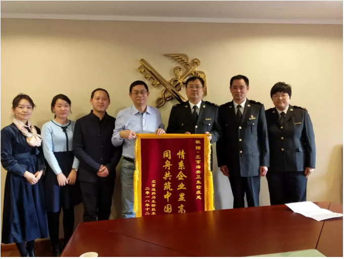 2018年12月19日達(dá)科為公司董事長吳慶軍攜公司主要人員拜訪了北京海關(guān),并送上“情系企業(yè)顯高效,同舟共筑中國夢”的錦旗和感謝信,對于北京海關(guān)衛(wèi)生監(jiān)督檢疫處依法辦事、高效廉政和熱情為企業(yè)服務(wù)的工作精神,表達(dá)了誠摯的敬意!北京海關(guān)副關(guān)長孫福軍、衛(wèi)生處處長黃建華、衛(wèi)生處副處長田睿共同接見。