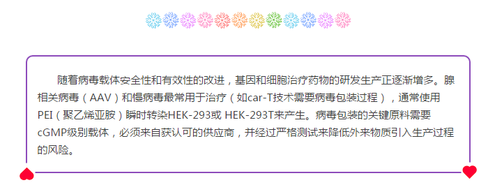 大規(guī)模Car-T病毒包裝就用它啦,法國(guó)Polyplus的PEIpro?轉(zhuǎn)染試劑,還有臨床級(jí)別哦!