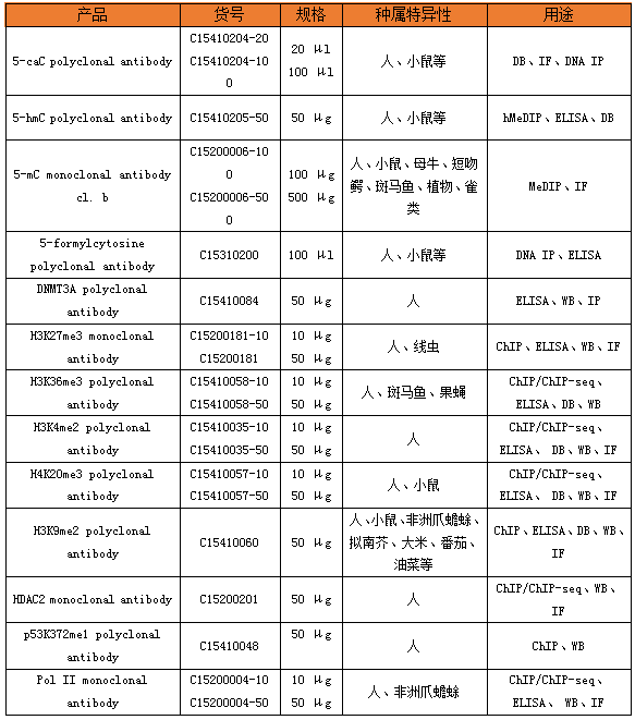 基礎(chǔ)級(jí)(Pioneer)抗體例舉