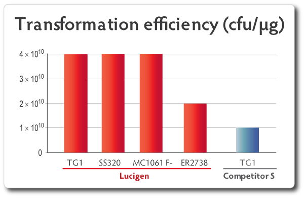 E. cloni? 10G ELITE電轉感受態(tài)轉化效率≧2×1010 cfu/μg,E. cloni? 10G化學轉感受態(tài)轉化效率≧1×109 cfu/μg;
