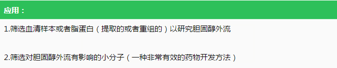 BioVision膽固醇外流檢測(cè)試劑盒Cholesterol Efflux Fluorometric Assay Kit (Cell-Based) cat#K582-100 是目前市售的唯一沒(méi)有毒性的膽固醇外流檢測(cè)試劑盒,其原理是利用熒光標(biāo)記膽固醇,以高通量檢測(cè)細(xì)胞中的膽固醇外流。