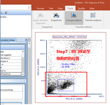 依次調(diào)整好各單管Control的Marker門的位置。此處不一一列舉?;氐窖a(bǔ)償界面。此處的3、4適用于使用補(bǔ)償beads調(diào)節(jié)補(bǔ)償?shù)那闆r(由于本次數(shù)據(jù)為細(xì)胞,此處不詳細(xì)列出,如對此步驟感興趣,可咨詢小達(dá)君)