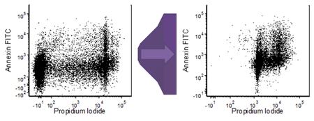 流式細(xì)胞分析時(shí),樣本細(xì)胞中一般都含有一定量的死細(xì)胞,通過一定的方法可以減少樣本中死細(xì)胞的比例,但是完全去除樣本中的死細(xì)胞幾乎是不可能的。但流式分析的目標(biāo)為活細(xì)胞,因此流式分析時(shí)將死細(xì)胞當(dāng)作活細(xì)胞來分析,會(huì)嚴(yán)重影響流式分析的結(jié)果,通??梢赃x擇熒光染料來標(biāo)記區(qū)分死活細(xì)胞的方法,下面介紹一些流式分析時(shí)區(qū)分死細(xì)胞和活細(xì)胞的簡單方法。