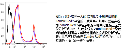當(dāng)流式檢測(cè)只分析細(xì)胞表面抗原分子,且不對(duì)樣本固定時(shí),7-AAD和PI是比較理想和經(jīng)典的方法。但是如果需要分析細(xì)胞內(nèi)的分子,如檢測(cè)胞內(nèi)細(xì)胞因子、胞內(nèi)活化的激酶和核內(nèi)分子等需要固定樣本細(xì)胞,在胞膜上打孔,使熒光素偶聯(lián)抗體能夠通過細(xì)胞膜進(jìn)入細(xì)胞內(nèi),與相應(yīng)目標(biāo)分子結(jié)合,這時(shí)7-AAD與PI就無法鑒別死細(xì)胞和活細(xì)胞了。