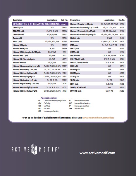 Active motif干細(xì)胞表觀遺傳學(xué)指導(dǎo)