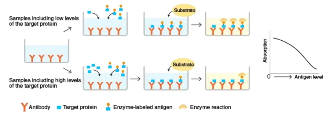 1、樣本中分析物水平較低可以使用哪些方法改進(jìn)檢測(cè)?通過增加洗滌次數(shù)和兩次洗滌之間的浸泡時(shí)間降低背景。控制測(cè)定精確度。例如,在移液時(shí)要更加小心和一致,使用干凈的紙巾拍板,以避免污染。增加孵育時(shí)間。但這通常也會(huì)增加背景,因此檢測(cè)靈敏度不一定會(huì)增加。如果可以的話,建議濃縮樣本。使用5-PL曲線擬合方法,更準(zhǔn)確地計(jì)算標(biāo)準(zhǔn)曲線下端的樣本濃度。在大多數(shù)情況下,樣本可能只含有非常低或無法檢測(cè)到的分析物水平。這時(shí)無論如何操作和測(cè)定,仍然無法檢測(cè)到準(zhǔn)確濃度。2、包板應(yīng)如何存放?如果包被完抗體的板不能立即使用,應(yīng)將其密封并在4°C儲(chǔ)存過夜。3、為什么使用同一克隆號(hào)的捕獲抗體和檢測(cè)抗體建立ELISA實(shí)驗(yàn)沒有成功?如果使用相同的克隆抗體進(jìn)行檢測(cè)和捕獲,則抗原表位可能已經(jīng)被其中一種抗體占據(jù)并抑制另一抗體結(jié)合。建議捕獲和檢測(cè)抗體選擇不同的克隆號(hào)。4、應(yīng)該使用哪種包被緩沖液?一般來說,建議使用PBS(pH 7.4)或碳酸鹽緩沖液(pH 9.5)。確切的包被緩沖液可能取決于要檢測(cè)的細(xì)胞因子。5、為什么細(xì)胞因子流式染色與ELISA測(cè)定之間沒有良好的相關(guān)性?流式細(xì)胞術(shù)檢測(cè)的胞內(nèi)細(xì)胞因子代表檢測(cè)時(shí)的陽性細(xì)胞比例,ELISA代表細(xì)胞因子隨時(shí)間的積累量??赡苌倭康年栃约?xì)胞在一段時(shí)間之后會(huì)分泌大量的細(xì)胞因子于培養(yǎng)上清中,導(dǎo)致ELISA的結(jié)果與胞內(nèi)因子染色的結(jié)果不一致6、可以使用細(xì)胞培養(yǎng)板進(jìn)行ELISA實(shí)驗(yàn)嗎?不可以。細(xì)胞培養(yǎng)板設(shè)計(jì)用于達(dá)到細(xì)胞培養(yǎng)目的,通常不具有高蛋白結(jié)合能力。對(duì)于ELISA,建議使用具有高蛋白結(jié)合能力的板,例如 Nunc Maxisorp?酶標(biāo)板。7、血清等樣本可以重復(fù)使用嗎?不建議重復(fù)使用樣本。為了獲得準(zhǔn)確的結(jié)果,樣本應(yīng)分裝儲(chǔ)存,僅供一次性使用。如果重復(fù)使用樣本,需要進(jìn)行額外的驗(yàn)證實(shí)驗(yàn),以確保實(shí)驗(yàn)準(zhǔn)確性。8、在什么步驟中,可以暫停ELISA實(shí)驗(yàn)?可以冷凍板子以備后用嗎?最好遵循說明書操作,沒有任何可以暫停實(shí)驗(yàn)的步驟。但是,如果一定需要暫停實(shí)驗(yàn),建議在封閉步驟(包被捕獲抗體后)??梢栽诳字屑尤?00 μL封閉緩沖液,并將板在4°C過夜(信號(hào)損失最小或沒有)或在-20°C冷凍幾天(可能會(huì)對(duì)信號(hào)產(chǎn)生一些影響)。不建議在第一步進(jìn)行(在4°C用捕獲抗體包被超過16-20小時(shí)),因?yàn)榭赡軙?huì)導(dǎo)致高背景。9、包被捕獲抗體可以超過過夜的時(shí)間嗎?通常來說,建議在4°C包被16-20小時(shí)。較長的孵育時(shí)間可能會(huì)增加與板結(jié)合的捕獲抗體量,會(huì)增加背景。10、培養(yǎng)基中的酚紅會(huì)干擾ELISA測(cè)定嗎?不會(huì),培養(yǎng)基中酚紅的吸光度可以在計(jì)算時(shí),通過扣除空白孔中本底的吸光度而消去,因此不會(huì)干擾ELISA測(cè)定的讀數(shù)。11、對(duì)于一些ELISA試劑盒,為什么血清樣本需要稀釋?血清樣本稀釋可以盡量減少樣本和標(biāo)準(zhǔn)品之間的基質(zhì)差異,以獲得更加準(zhǔn)確的結(jié)果。12、如何提高ELISA檢測(cè)獲得更好的信號(hào)和靈敏度?增加孵育時(shí)間,但這也可能會(huì)增加檢測(cè)的背景,同時(shí)不改變靈敏度。在孵育步驟中搖動(dòng)板子。確保標(biāo)準(zhǔn)品在使用前完全溶解。在兩次洗滌之間增加浸泡時(shí)間,以進(jìn)一步降低背景。如果可以的話,在450-570 nm處讀板以減去本底。通過控制移液誤差或使用更大體積的洗滌緩沖液洗滌來改善CV值。使用5-PL或4-PL曲線擬合方法,而不是線性曲線擬合。